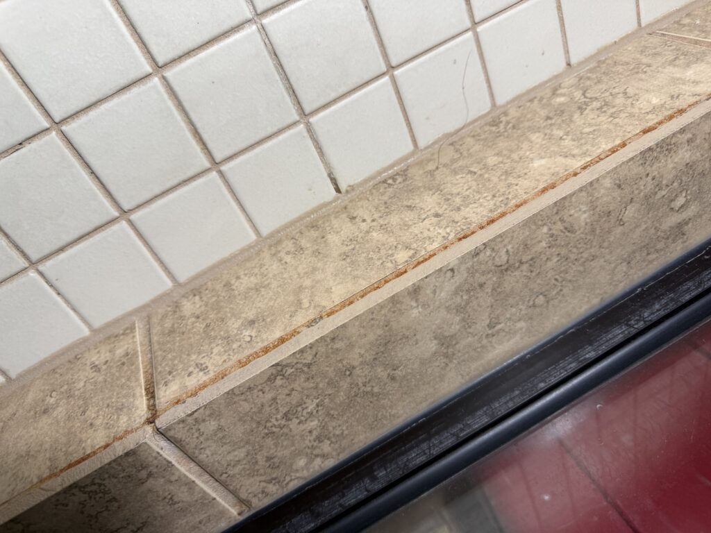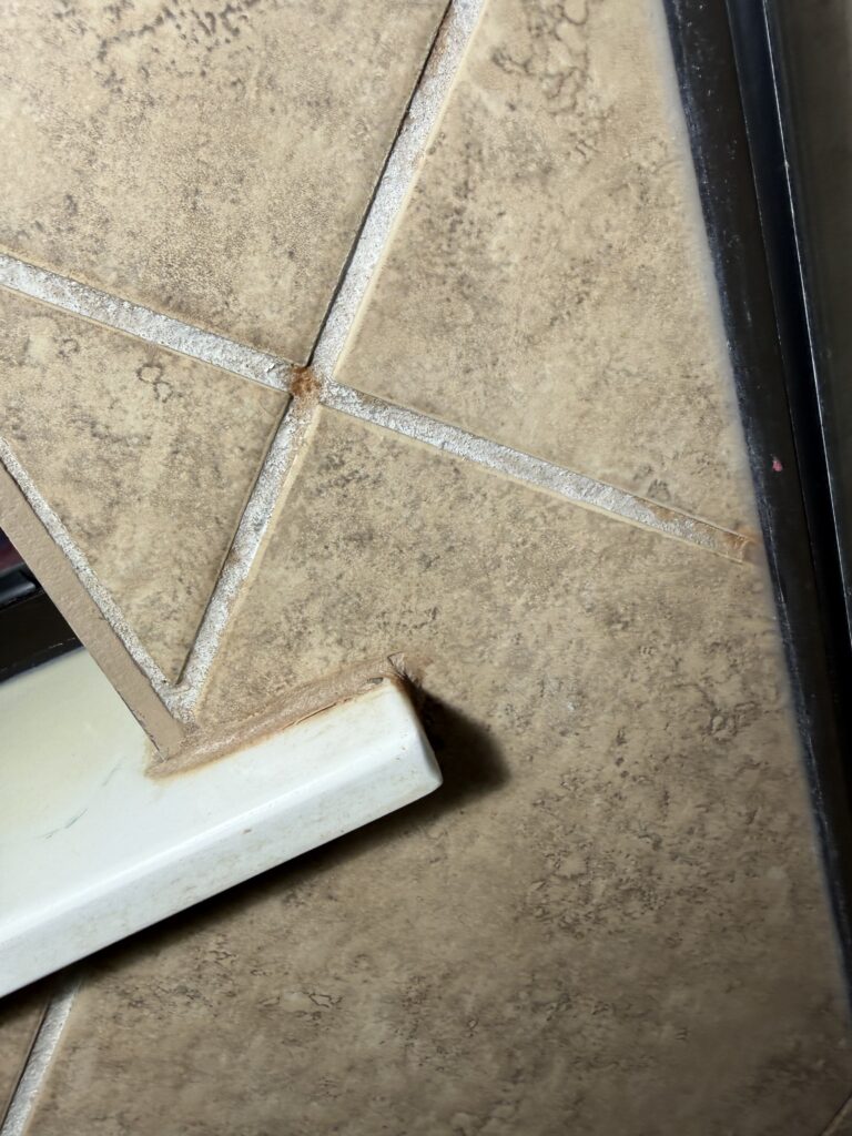 When caulking fails in these areas, water can migrate behind the tile and escape into surrounding walls, framing, and nearby rooms such as garages or closets.